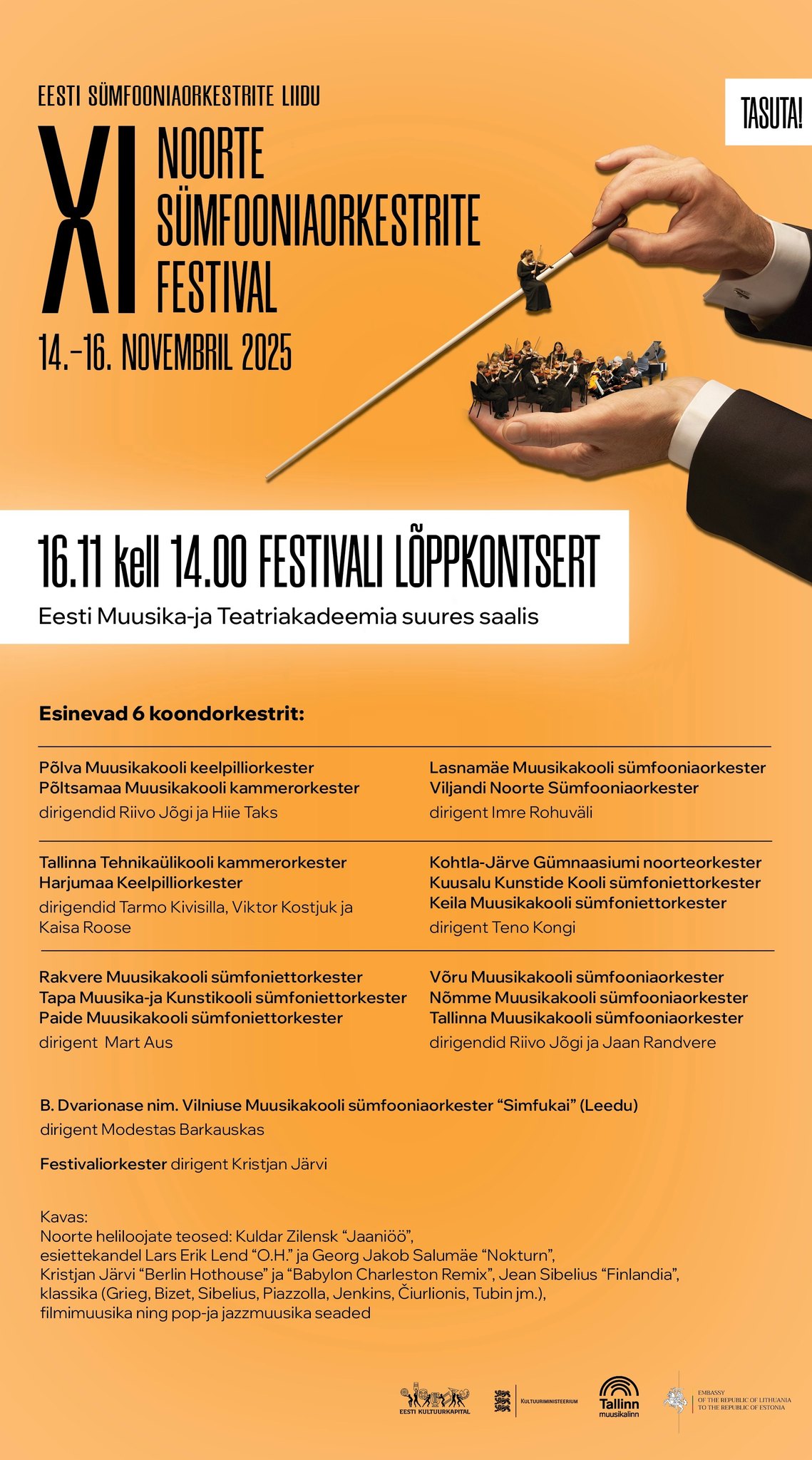16. novembril toimub XI Noorte Sümfooniaorkestrite Festivali lõppkontsert EMTA saalis kell 14.00