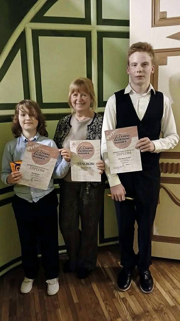 24. september tõi sügisvaheaja lõppu rõõmsaid uudiseid suvepealinnast, kus 43. Akordionimuusika Festivali raames toimus Pärnu Kunstide Koolis rahvusvaheline akordionistide konkurss. Meie koolist osalesid Olivia Kalluste õpilased Rein Baranin ja Otto-Oliver Andres ja tegid seda ülitublilt! Rein saavutas A2 kategoorias II ja Otto-Oliver A3 kategoorias I koha!! Palju-palju õnne neile sellise suurepärase tulemuse puhul ja suur aitäh Oliviale tublide õpilaste eest!