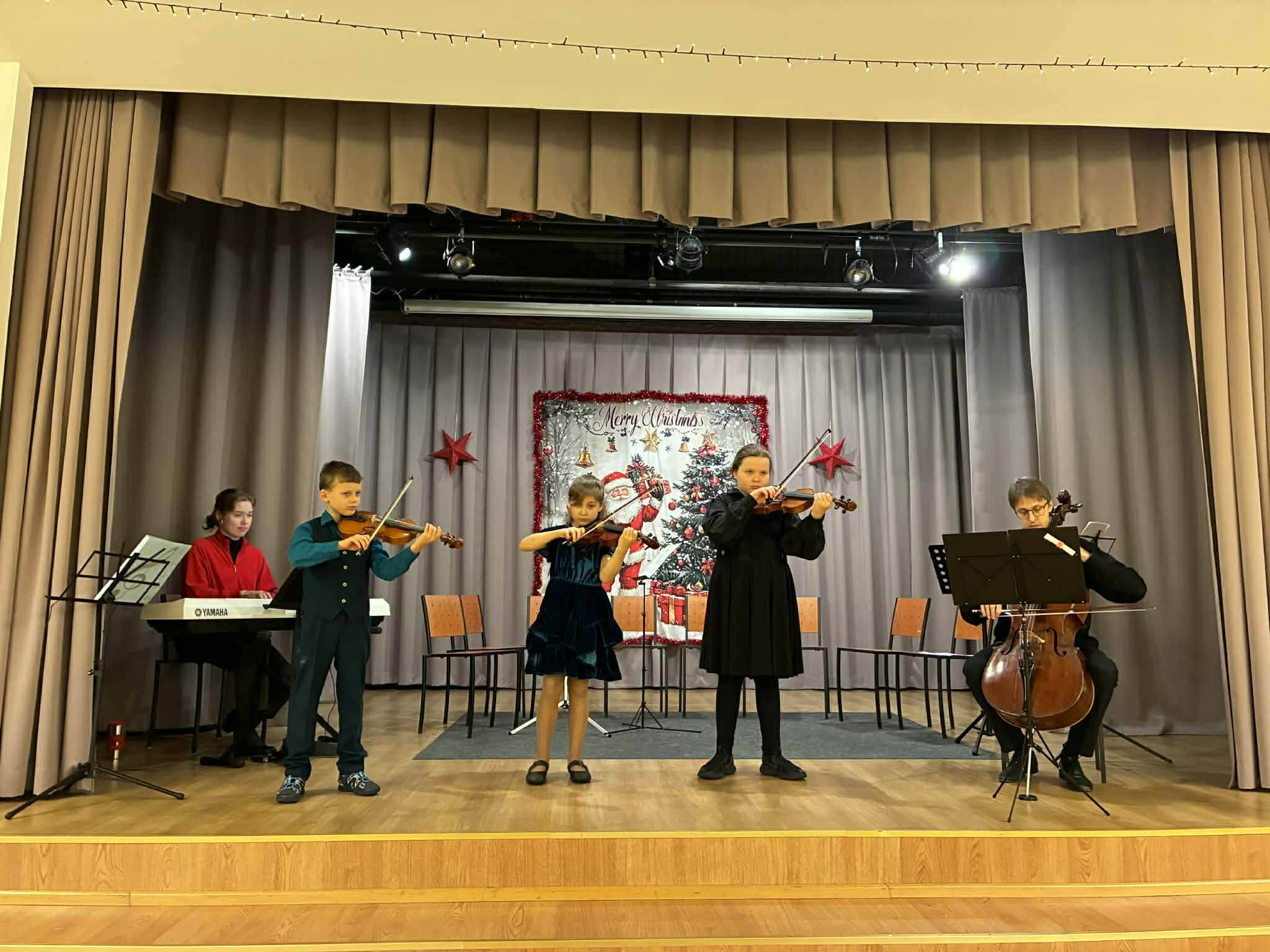 Teist adventi tähistasid meie keelpillid kauni kontserdiga Kuimetsa rahvamajas. Oli imetore päev – lapsed said koos musitseerida, jõuluehteid ja -kaarte valmistada ning lõpuks ùheskoos mängida. Saal oli rahvast täis ja meeleolu nii kuulajatel kui esinejatel hubaselt jõululine.