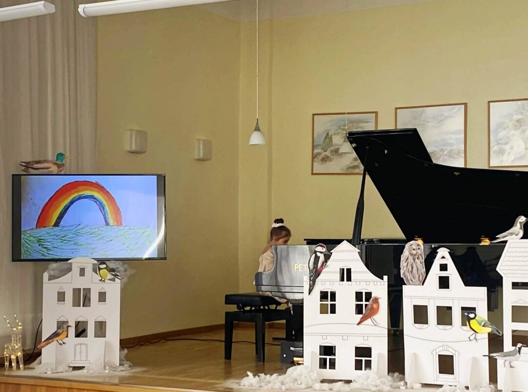 14. veebruaril toimus meie kooli saalis midagi uut, suurt ja ilusat. Esmakordselt sai teoks konkurss-festival ‘Talvemuinasjutt’, kus kuni 11-aastased pianistid said näidata oma oskusi nii klaverimängu kui joonistamise alal. Teemadeks eelkõige muinasjutud, loodus ja loomad-putukad. Osalejaid lapsi oli palju, kolmes grupis kokku üle 80, sai näha fantaasiaküllaseid pilte ja kostüüme. Ning loomulikult kuulata palju ilusat muusikat ja häid esitusi. Kõige rohkem kõlas sel päeval meie oma Riine Pajusaare looming. Aitäh talle nende mõnusate palade, samuti päeva vedamise eest! Palju tänu Vladimira Ljutovale, kes on selle toreda sündmuse idee autor! Positiivne tagasiside annab põhjust uskuda, et see muutub traditsiooniks. Soovime väga tänada žürii liikmeid Ia Remmelit ja Marja Jürissoni, kes said pika tööpäeva, aga õnneks ka häid emotsioone! Suur aitäh Kunstikool DAK õpilastele ja Niina Pilvingule lavakujunduse eest! Ning loomulikult pikk aplaus, tänu ja kiitus kõigile mängijatele, juhendajatele ning taustajõududele!! Aitäh, et aitasite sel kaunil festivalil toimuma saada, oli üks ilus sõbrapäev.