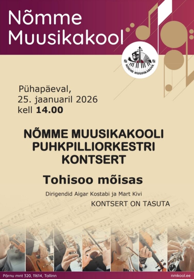 - Puhkpilliorkestri kontsert Tohisoo mõisas 25.01 kell 14.00