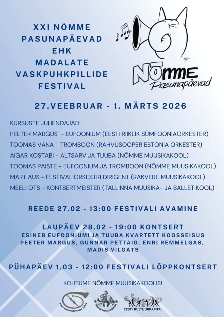 - Vaskpuhkpilli eriala õpilaste kontsert kell 15.00
