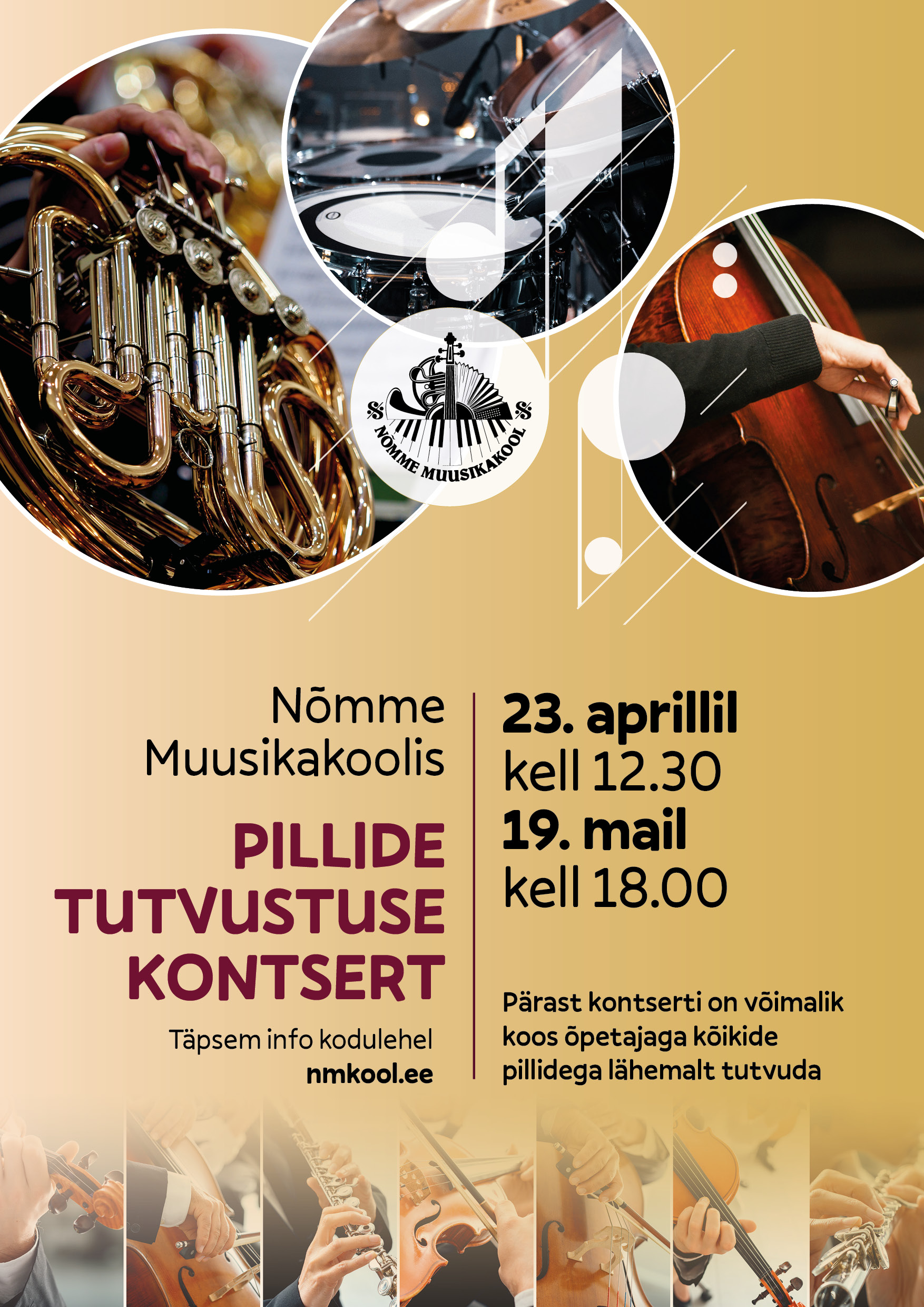 23. aprillil kell 12.30 ja 19. mail kell 18.00 toimuvad kooli saalis erinevaid pille tutvustavad kontserdid. Saab tulla kuulama ilusat muusikat ja vaatama, milline instrument tundub olevat just see õige, mida õppima hakata.